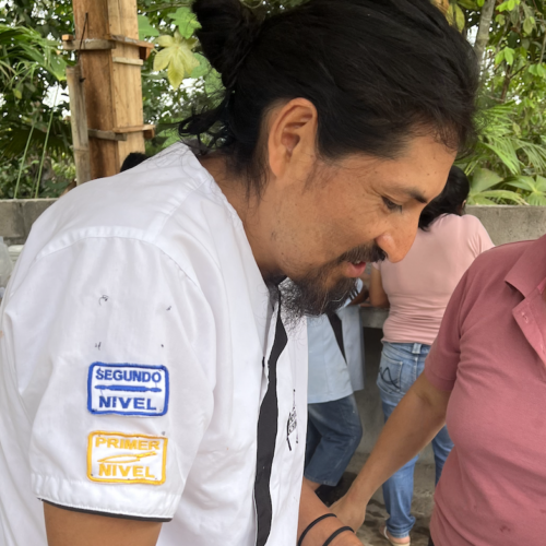 Néstor es chef y agricultor, y trabaja en un proyecto de cacao sostenible en su finca. El objetivo de este proyecto es valorizar los recursos del bosque mediante el uso de los PANCs (Plantas Alimenticias No Convencionales).